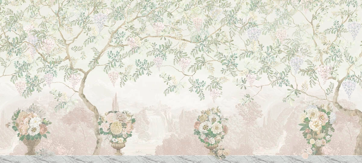 Деревья и вазы с цветами